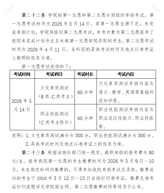 第二意愿测验时间为2026年4月11日!此外,1999年升格为高档职业院校,意愿填报时间为2026年2月26日8:00至3月4日17:00,考生可聚焦对招考试内容做好备考,